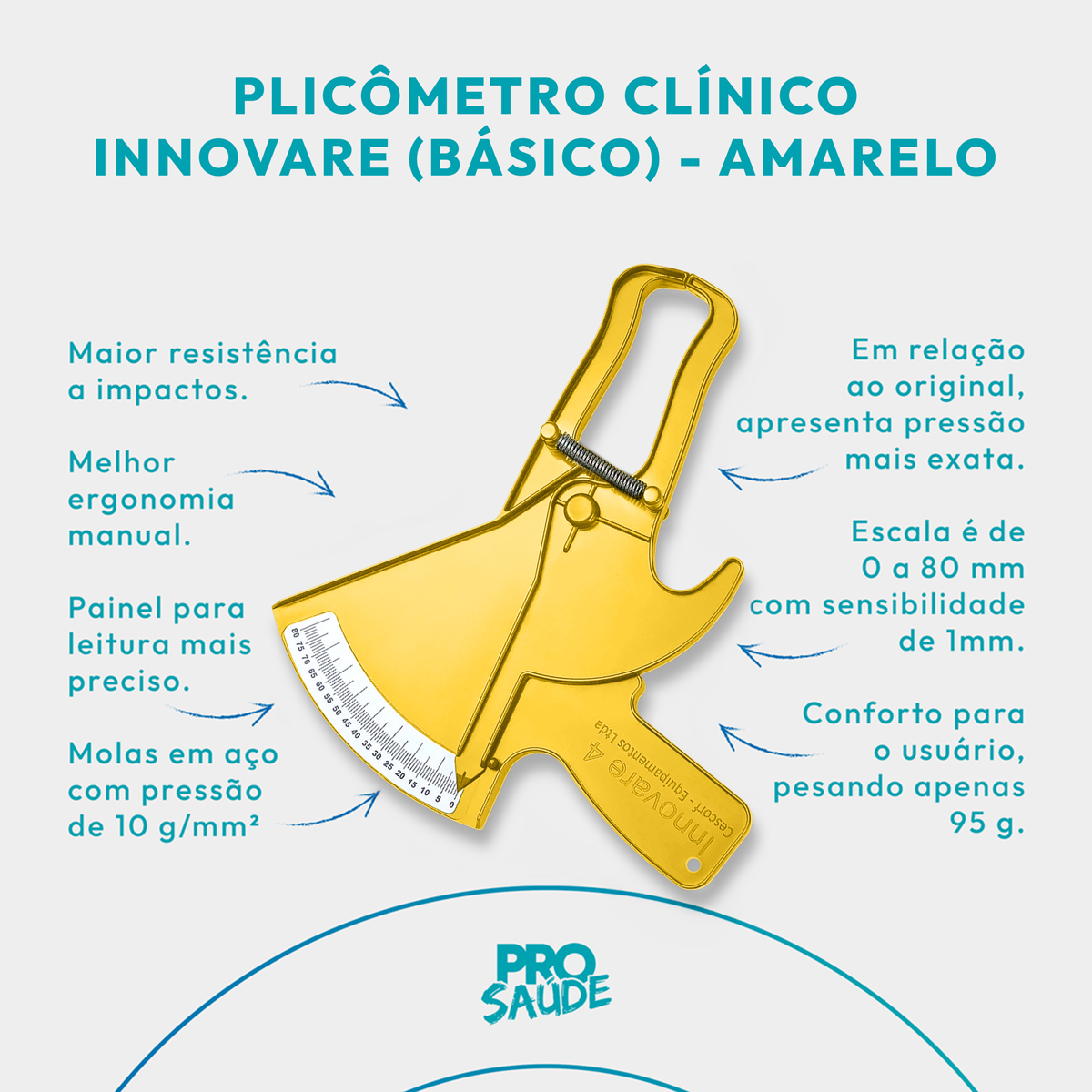 Base em ABS; molas em aço zincado e sistema simplificado de leitura.