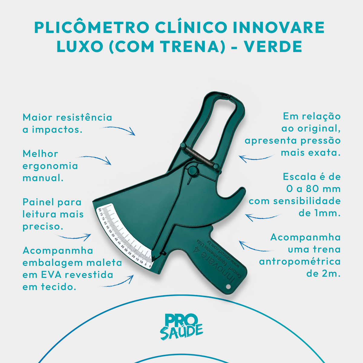 O Adipômetro Plicômetro Clínico Innovare Luxo Cescorf é uma ferramenta essencial para profissionais de saúde e fitness que buscam precisão e confiabilidade na medição da composição corporal. Este instrumento, feito de aço resistente, é projetado para durar, garantindo que você tenha um dispositivo confiável para usar em suas avaliações.