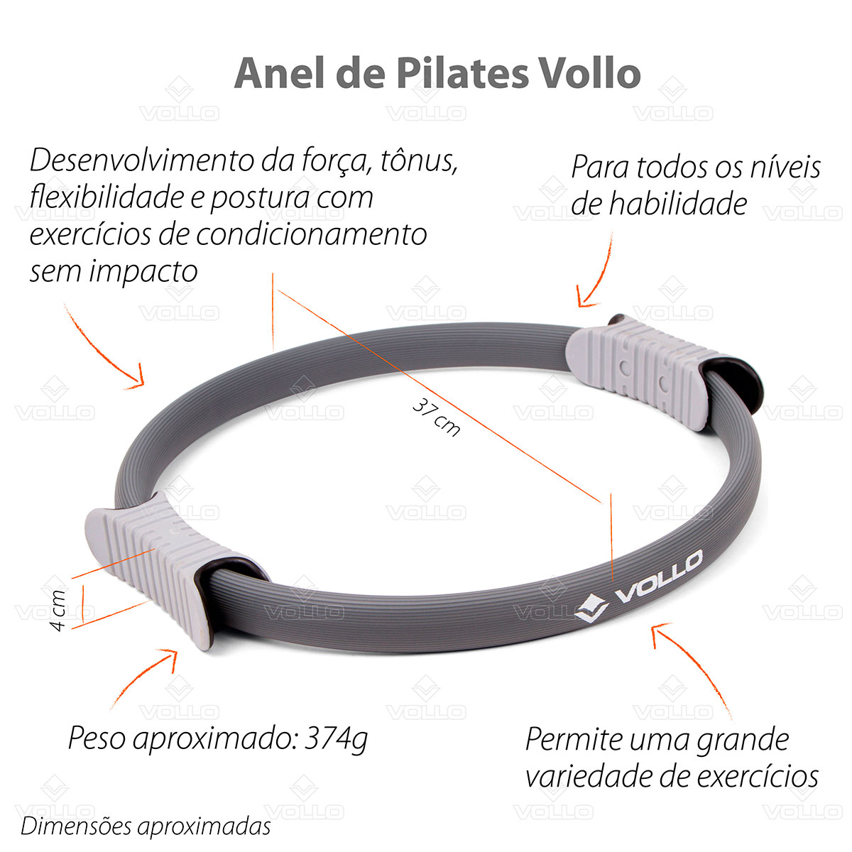 Especificações Suporte Anel de Pilates Vollo