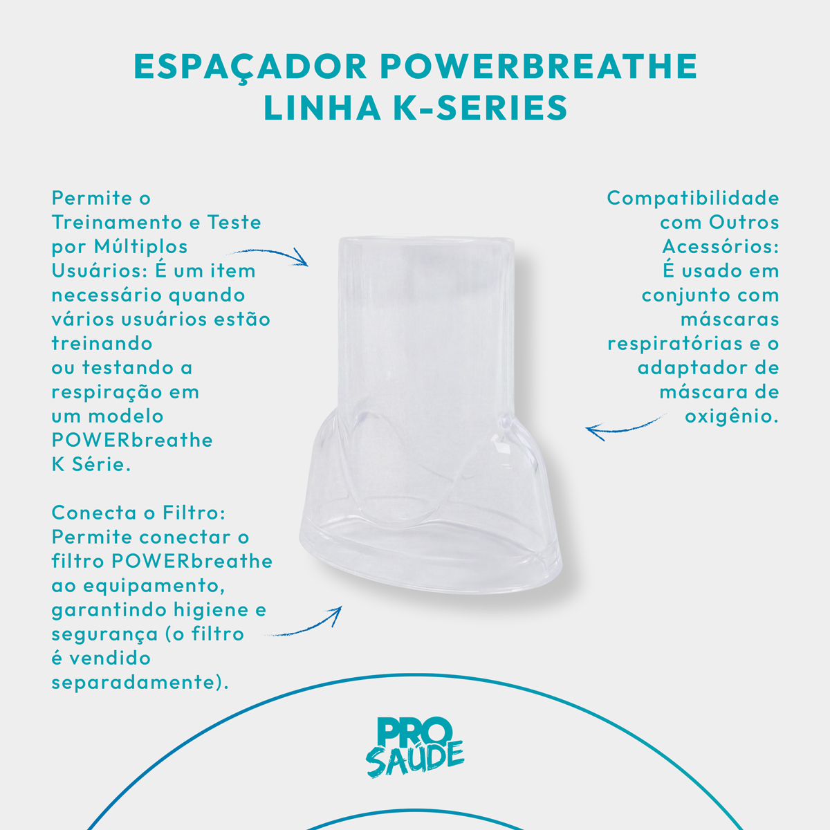 Este espaçador POWERbreathe (ou adaptador de filtro) é necessário para quando vários usuários estão treinando ou testando sua respiração em um modelo POWERbreathe K Série, pois permite conectar o filtro POWERbreathe a um equipamento.
