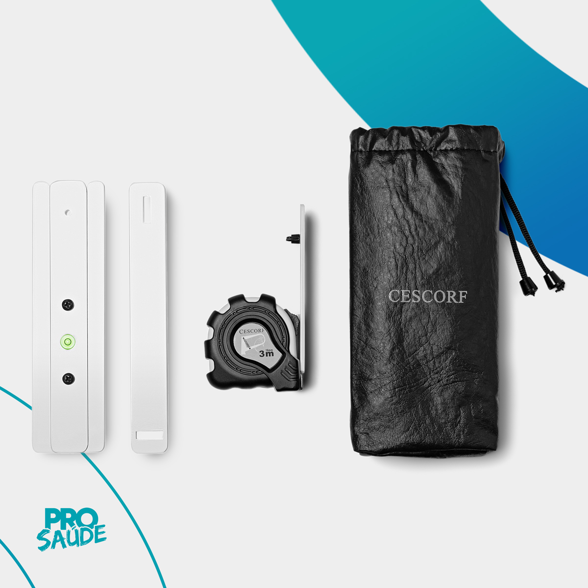 Estadiômetro de bolso é composto de uma trena métrica com leitura de ambos os lados da lâmina escalonada e três peças de alumínio naval que são: o suporte da trena métrica, a régua delimitadora, e a régua de solo.