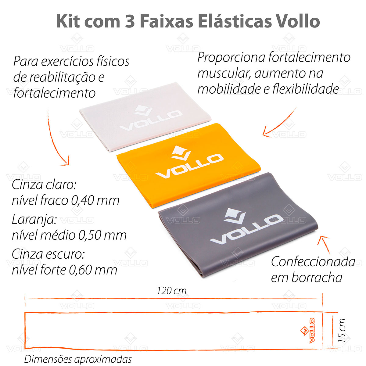 Principais Benefícios Kit com 3 Faixas Elásticas Vollo