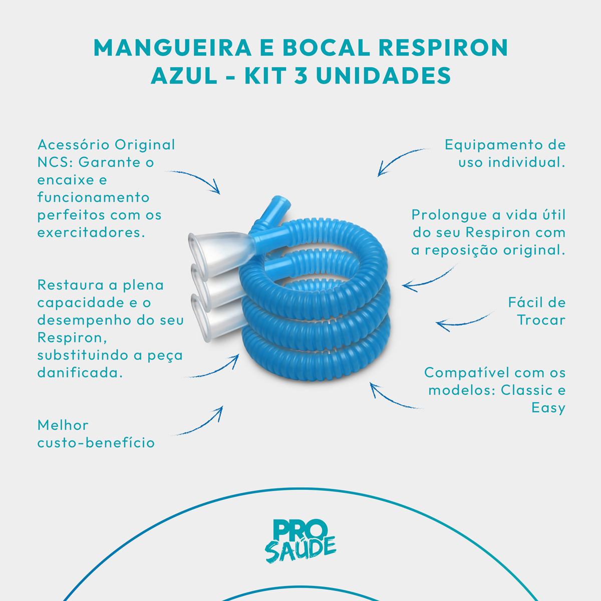 MANGUEIRA E BOCAL PARA RESPIRON AZUL KIT COM 03 UNIDADES