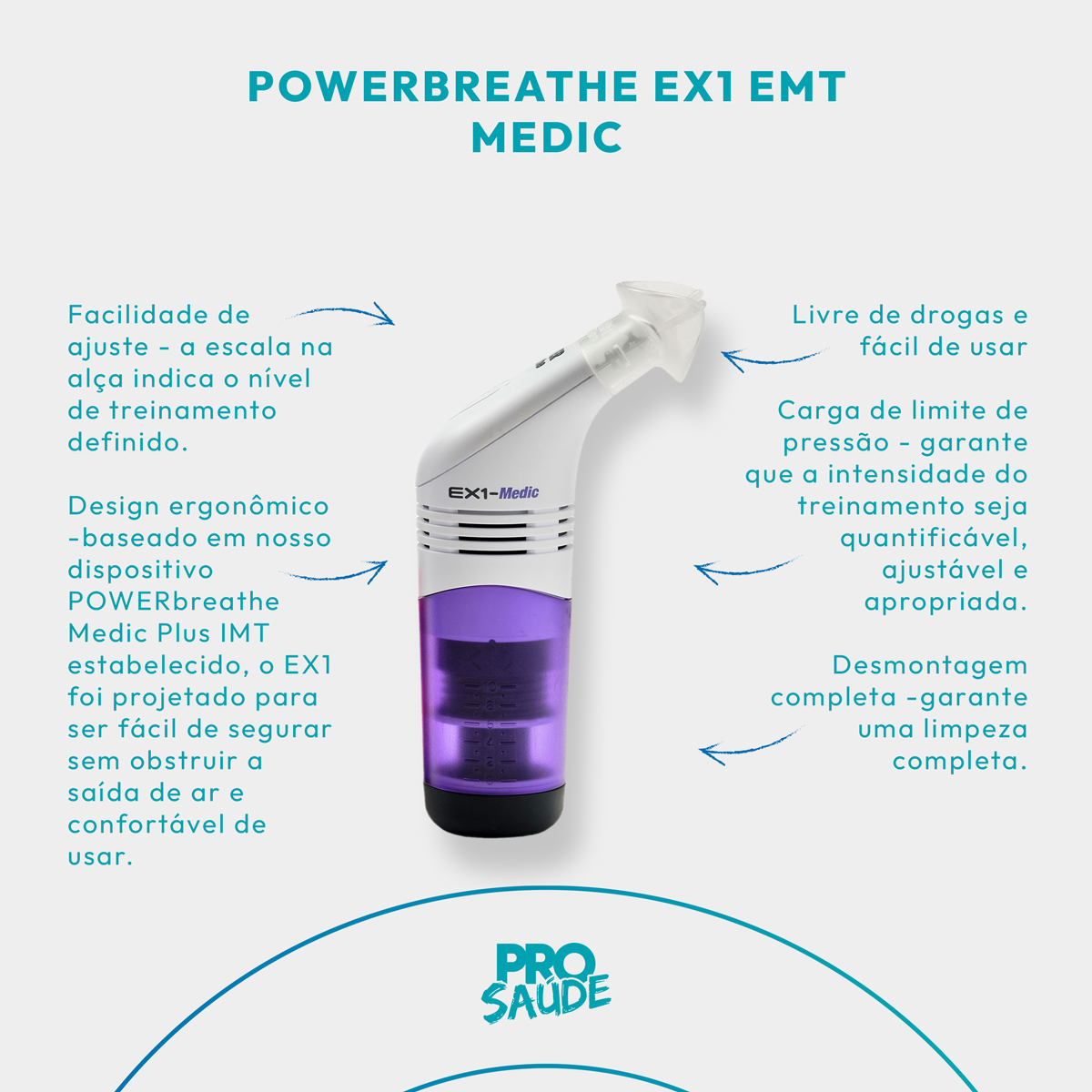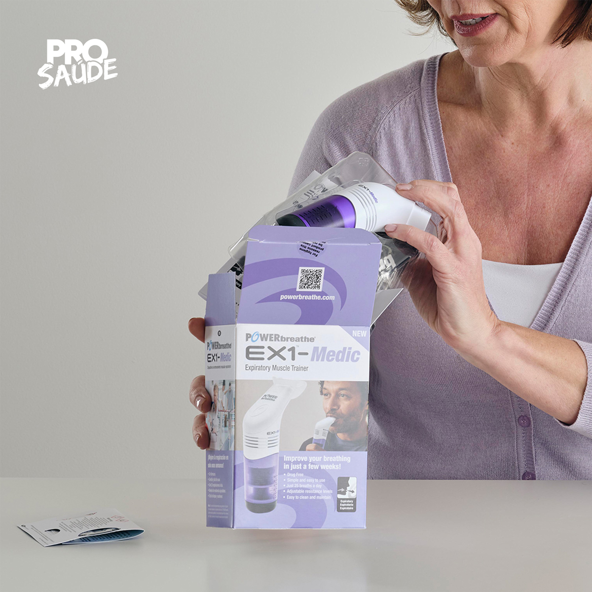 O POWERbreathe EX1 Medic oferece treinamento respiratório sem medicamentos e a mesma qualidade e precisão pelos quais nossos dispositivos de treinamento muscular Inspiratório se tornaram renomados mundialmente.