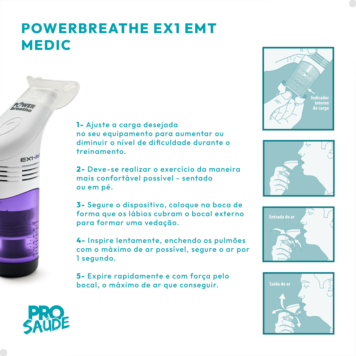 O POWERbreathe EX1 Medic auxilia no Treinamento Muscular Expiratório que tem como alvo específico os músculos expiratórios para melhora de força e resistência. Músculos expiratórios mais fortes ajudarão a expelir o ar dos pulmões. Isso é benéfico para a saúde e para aliviar sintomas em quadros de doenças pulmonares, melhorar aptidão física e respiratória, bem como seu desempenho esportivo.